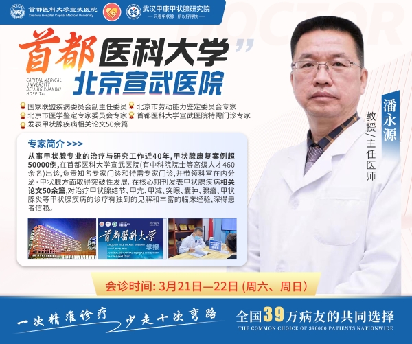 此次会诊的核心专家,均是国内甲状腺诊疗领域的领军人物。来自首都医科大学北京宣武医院的潘永源教授,拥有近40年甲状腺疾病诊疗经验。作为宣武医院知名专家及特需门诊专家,他带领团队在内分泌及甲状腺领域取得了突破性发展,累计康复案例超50000例。潘教授在核心期刊发表相关论文50余篇,尤其在甲状腺结节、甲亢、甲减、突眼及囊肿等疑难病的诊治上见解独到,深受患者信赖。